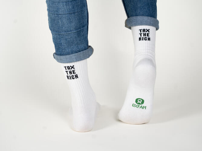 En Belgique, on n'est pas tous et toutes sur le même pied d’égalité. Les ultra-riches payent en moyenne beaucoup moins d’impôts que le reste de la population. La solution à ces inégalités ? On la trouve sur les chaussettes Oxfam : tax the rich! Répondez aux 3 questions ci-dessus et tentez de gagner une magnifique paire de chaussettes ! Aussi confortables que le système fiscal pour les ultra-riches 😉
