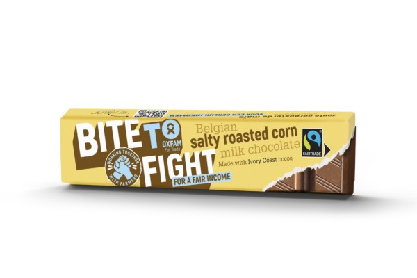 Bij aankoop van 3 repen chocolade 50g van om het even welke smaak, krijgt de klant een gratis reep melkchocolade met geroosterde maïs.