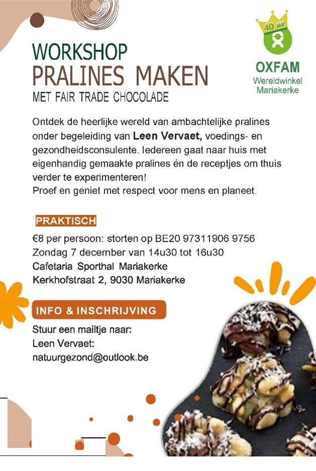 Workshops Geschenkenbeurs Oxfam Wereldwinkel Mariakerke