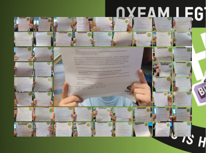 Na de theoretische uitleg kregen de leerlingen de kans om zelf een brief te schrijven over waarom ze het oneerlijk vinden dat boeren zo weinig verdienen. Vervolgens ondertekenden ze de protestbrief, die werd meegegeven aan de Oxfam-Wereldwinkel.