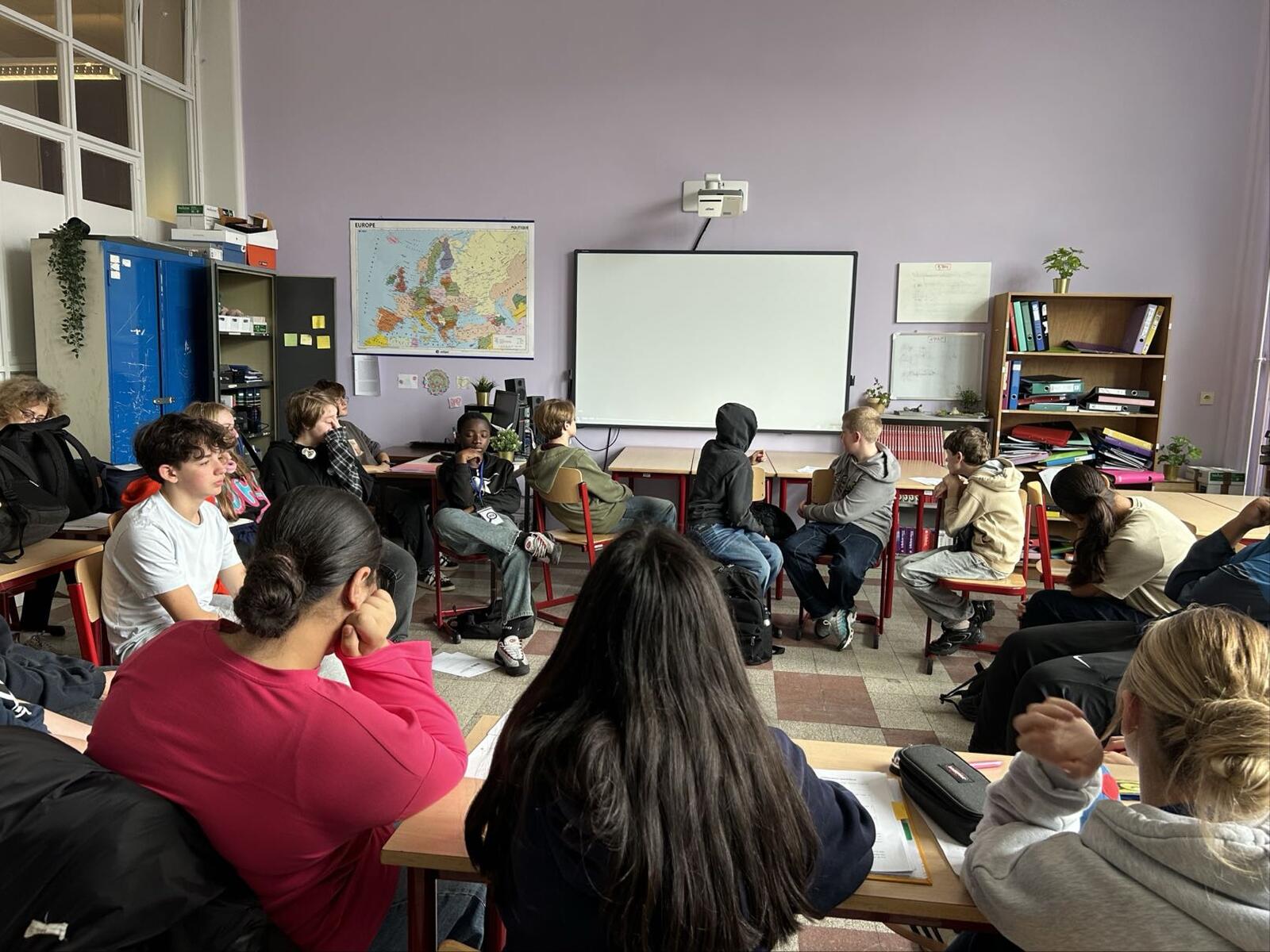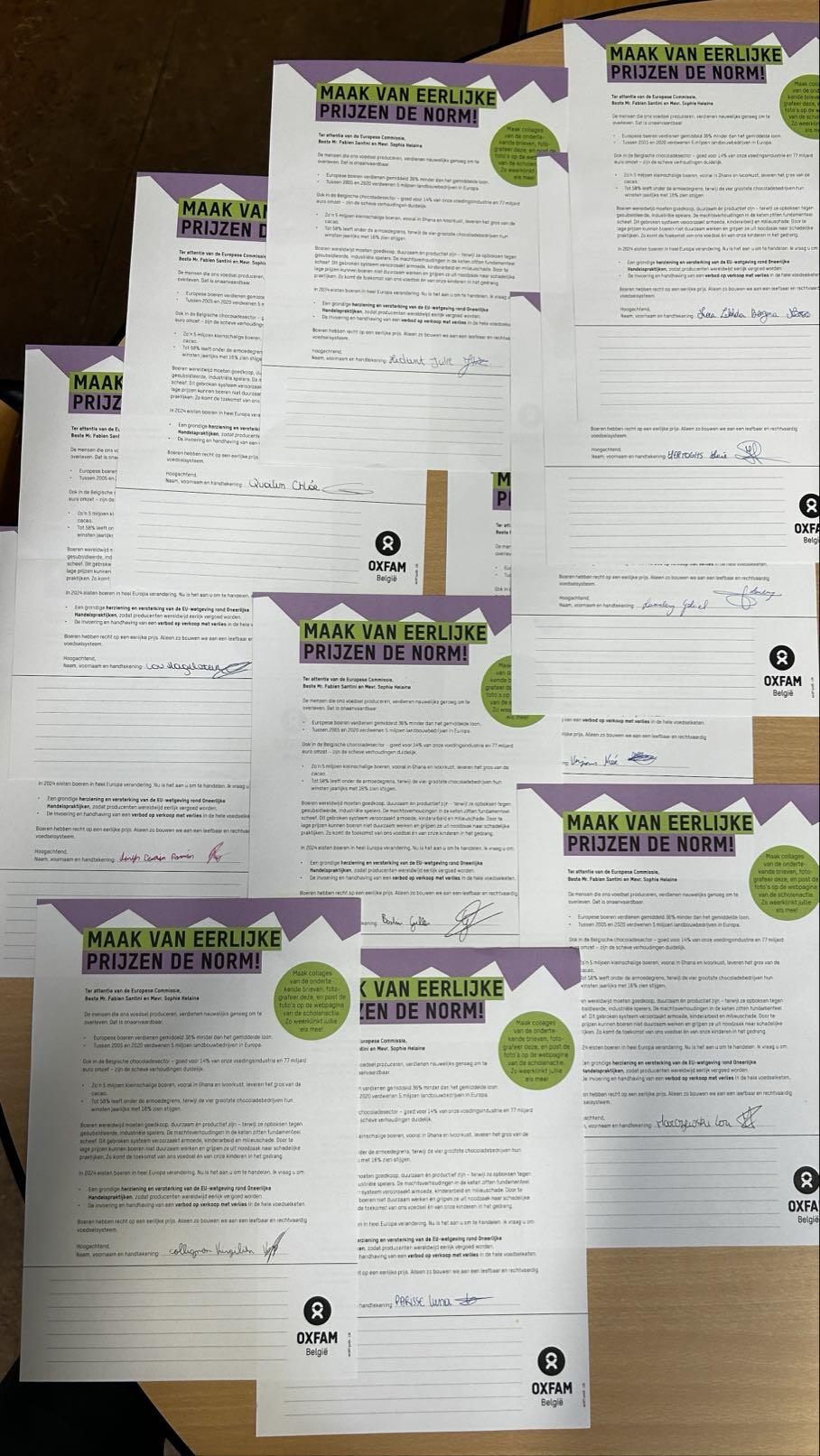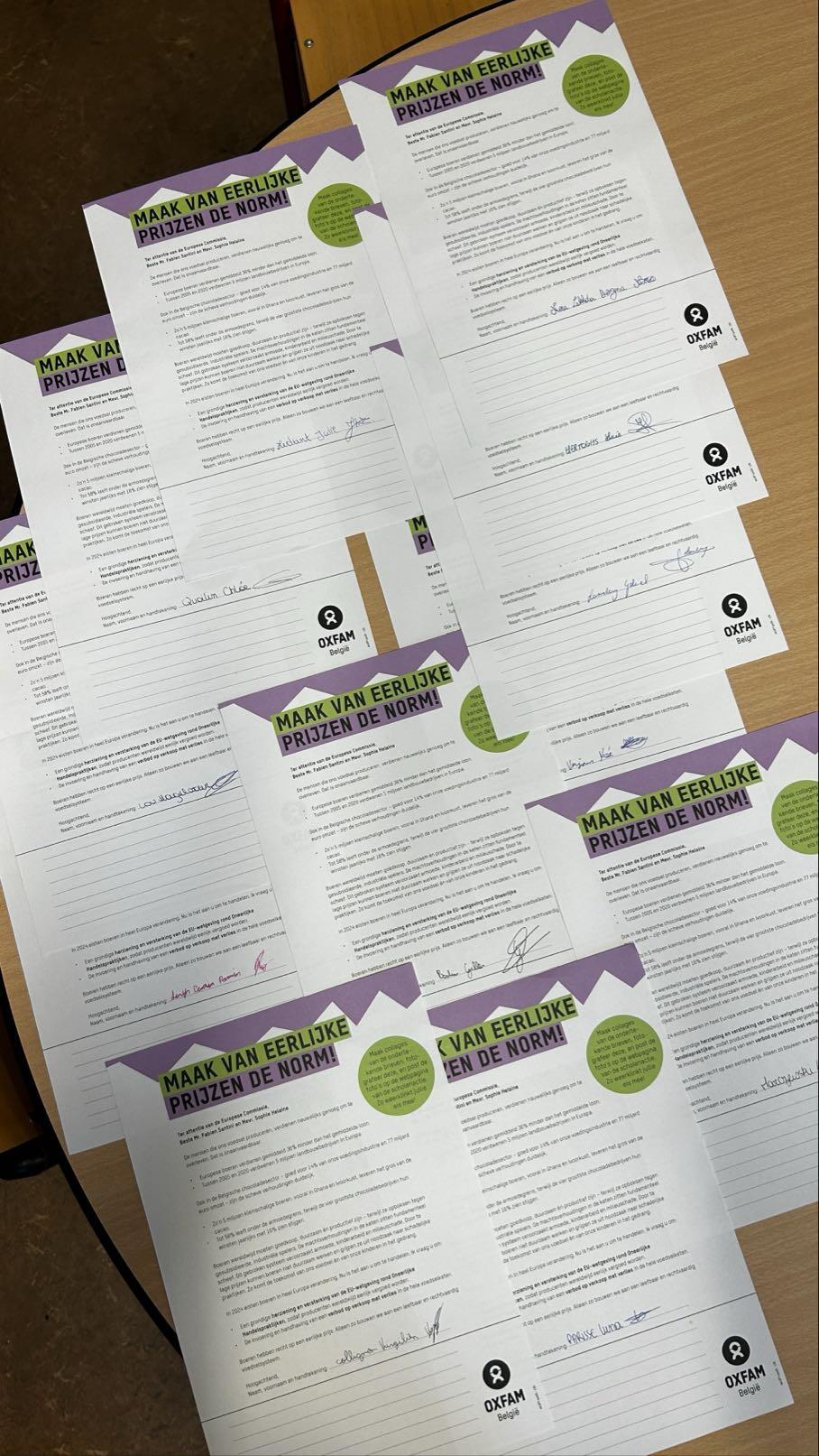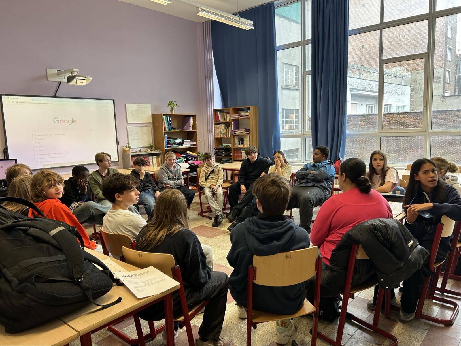 We zitten in zesde jaar op het Atheneum Leonie de Waha. We hebben groepen van twee tot vijf leerlingen gemaakt. Dan zijn we naar de leerlingenraad van de eerste en tweede jaars gegaan. We hebben over eerlijke handel gesproken om de jongste leerlingen van de school te sensibiliseren. We hebben een kleine presentatie gemaakt over wat ze kunnen doen op hun niveau.